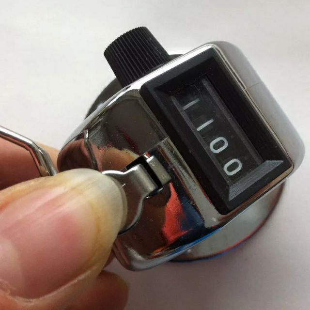MÁY ĐẾM SỐ CẦM TAY có chân đế gắn bàn SQ348 máy đếm số lượng có chân đế, Dụng cụ đếm số cầm tay, Đồng hồ bấm số cầm tay, máy đếm số thứ tự - Sản phẩm dùng trong công tác kiểm đếm lượt người và sản phẩm hàng hóa cho nhiều lĩnh vực: bệnh viện, ngành may trường học, thể thao, giao thông, nhà máy sản xuất, bến cảng, kho bãi . . . Đặc tính kỹ thuật: Kích thước: Nhỏ gọn, có đế và óc vít thích hợp đặt cố định trên vị trí bàn, mặt cố định. Hiển thị: 04 chữ số. Số màu trắng với nền đen Cài đặt về 0000: bằng cách xoay nút Reset Đóng gói: 1 máy / hộp - 10Cái/Box Tính năng: Thiết kế dễ sử dụng và độ chính xác cao trong việc đếm và kiểm đếm liên tục. Giá trị lên đến 9999, tăng lên từng số một, sau đó quay về 0000. Thiết lập lại giá trị 0000 bằng nút RESET. Dễ dàng kiểm đếm với nút bấm ở vị trí ngón tay cái; vỏ bằng kim loại, bền, chống thấm nước, với vòng kim loại để tránh rơi. Ngón tay kẹp cho thoải mái và dễ sử dụng; cầm tay phù hợp hoàn hảo trong lòng bàn tay. Hướng dẫn truy cập kiểm đếm, không có pin yêu cầu. Dễ dàng thao tác mỗi lần bấm và cho tất cả các nhu cầu: kiểm đếm hàng hóa, đếm số lượng người, các sự kiện hội nghị, đếm sản lượng ngành may,...